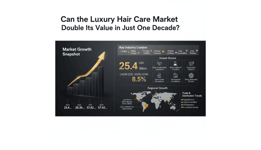 The Luxury Hair Care Market is experiencing remarkable growth, driven by increasing consumer demand for premium formulations and sustainable ingredients. Valued at USD 23.4 billion in 2024, the market is projected to reach USD 25.39 billion in 2025 and surge to USD 57.42 billion by 2035, registering a robust compound annual growth rate (CAGR) of 8.5% during the forecast period from 2025 to 2035. This exponential expansion reflects a fundamental shift in consumer preferences toward high-quality, ingredient-conscious hair care solutions that deliver both performance and luxury experiences.