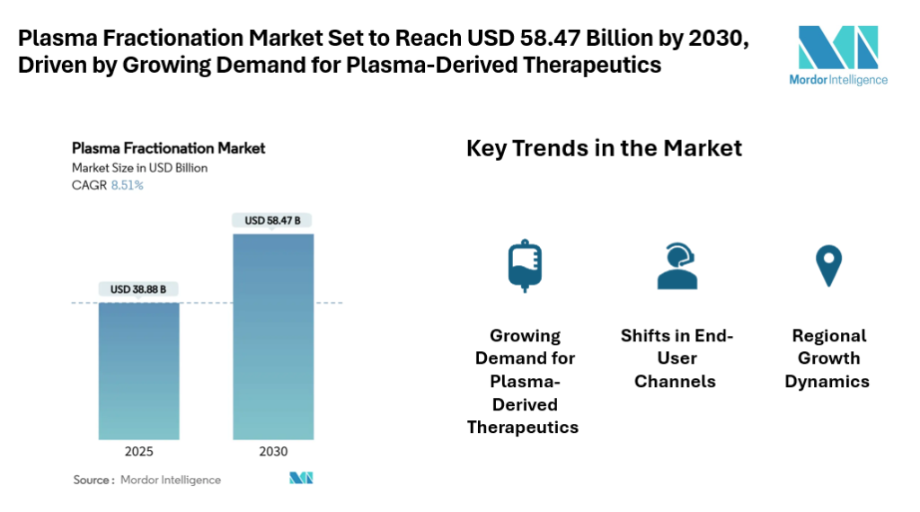 Mordor Intelligence has published a new report on plasma fractionation market, offering a comprehensive analysis of trends, growth drivers, and future projections.